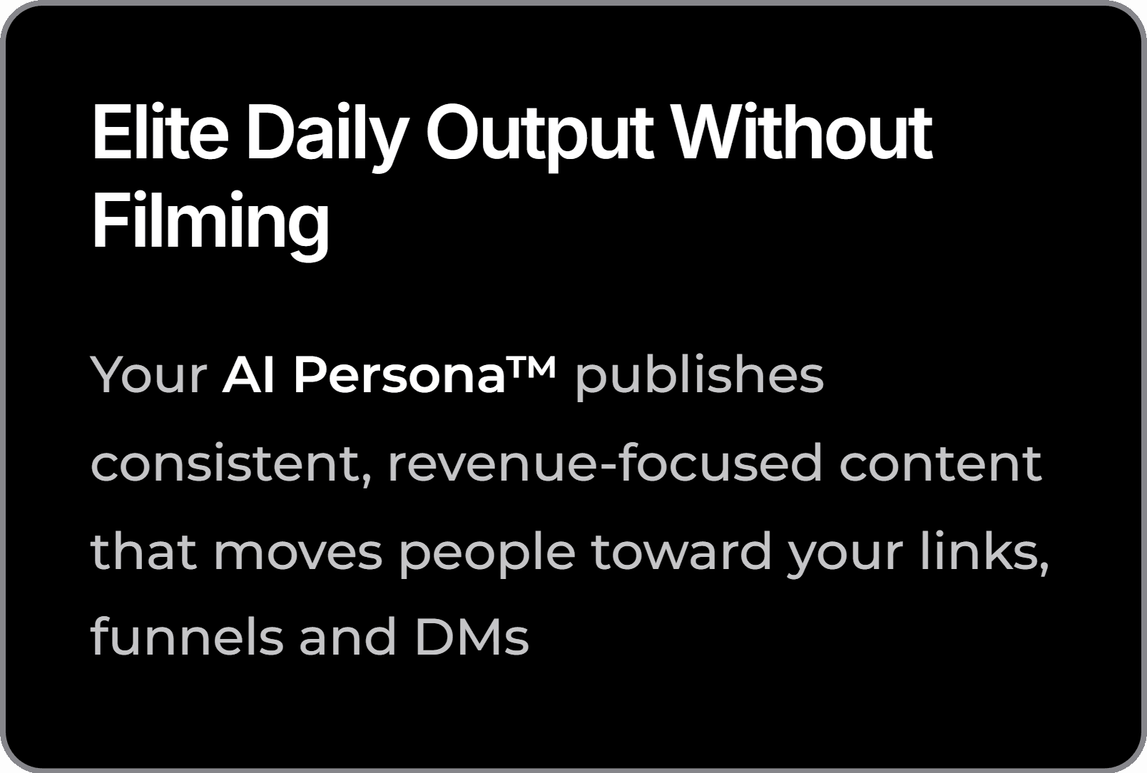 Your AI Persona™ publishes consistent, revenue-focused content that moves people toward your links, funnels and DMs