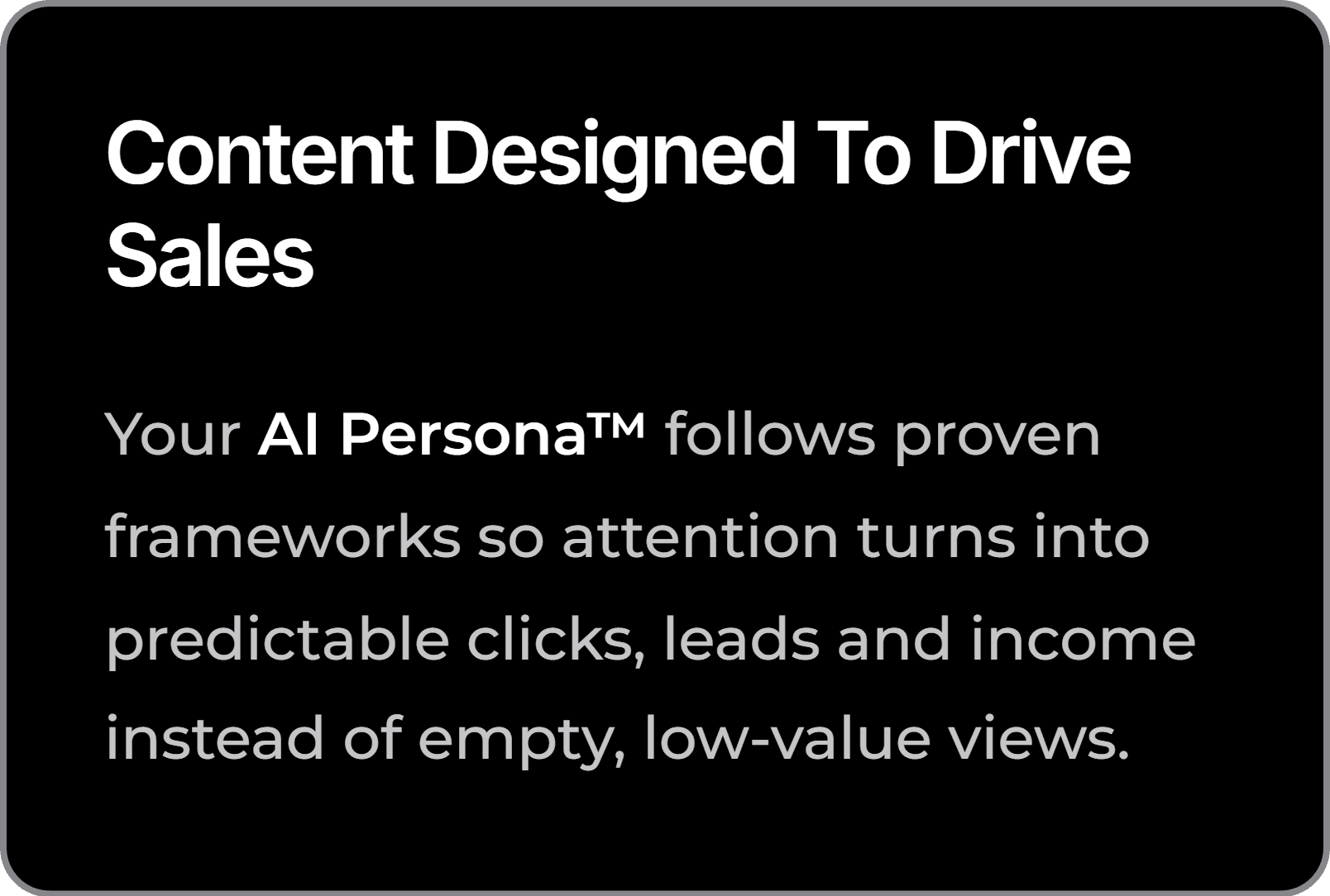 Your AI Persona™ follows proven frameworks so attention turns into predictable clicks, leads and income instead of empty, low-value views.