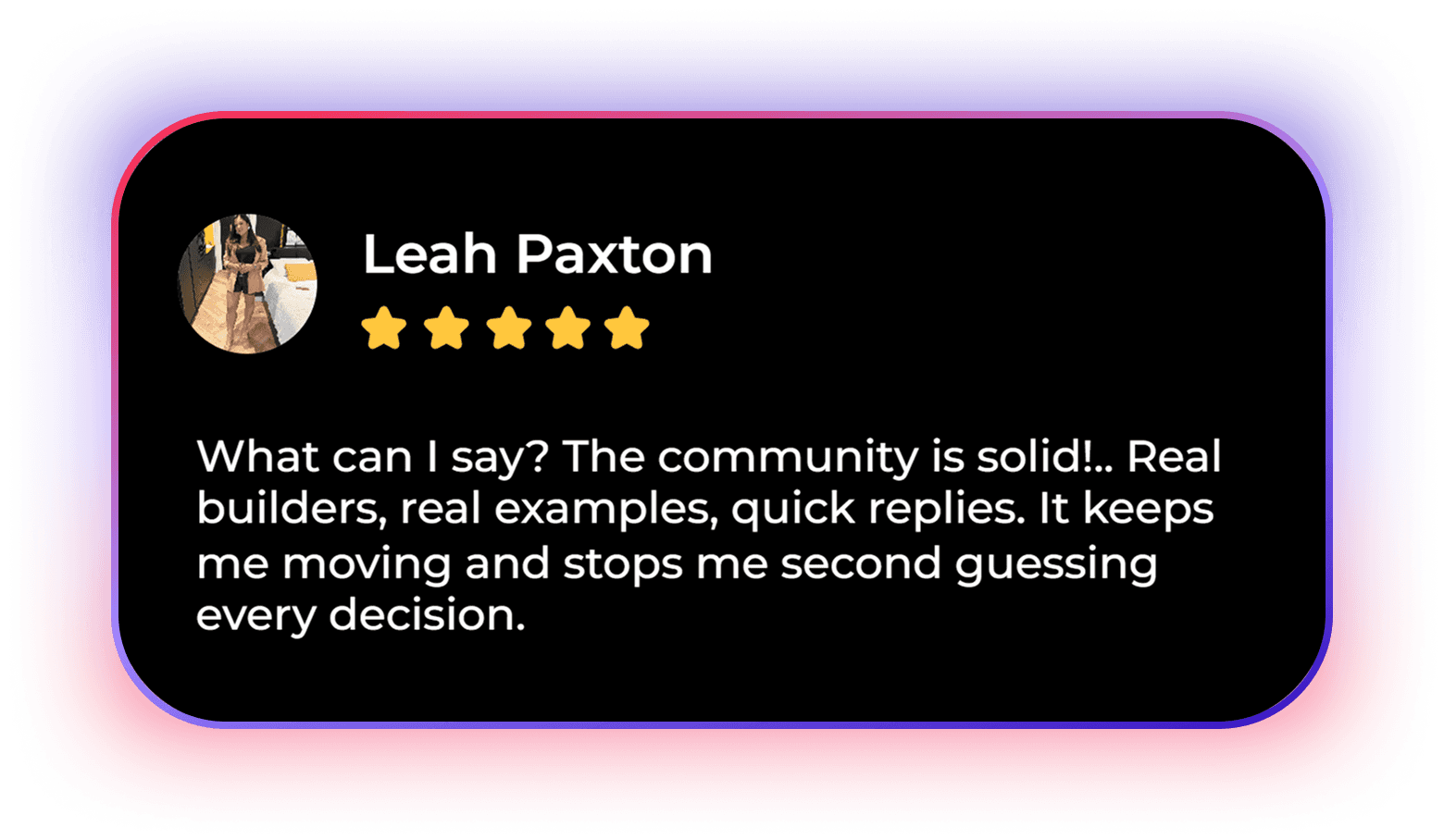 Weekly implementation threads, focused monetization challenges and live Q&A keep you consistent and moving forward at all times. You get direct support, clear answers and a private space to refine your system without judgment.
